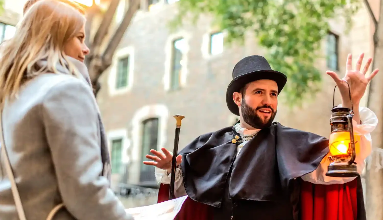 Si aún no sabes que visitar en Barcelona, con nuestro free tour de leyendas explorarás los rincones ocultos del Barrio Gotico mientras escuchas relatos fascinantes sobre fantasmas, crímenes, leyendas urbanas y hechos reales que marcaron la historia de la ciudad. Esta ruta teatralizada es ideal para quienes buscan actividades originales y excursion Barcelona, ya sea en grupo, en pareja o como experiencia de team building.